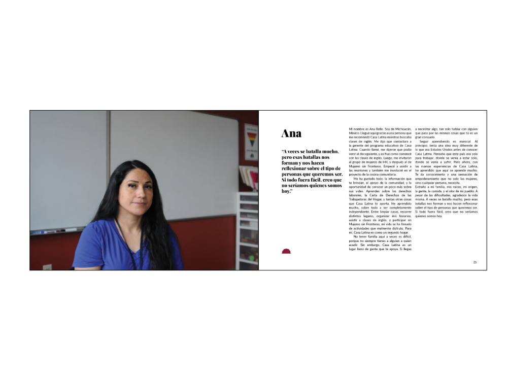 When designing the book we tried to create a balance between the length of the stories and the placement of the images to create a cohesive narrative. With this, we also spent time digging photographs in our archive to ensure there there was representation between the past and the current. An important portion of the work was to crafting a flow for the narrative that would be informative, engaging, built off of one another, and captured the essence of Casa Latina’s community.